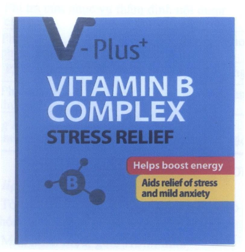 商标注册申请“V-Plus+ VITAMIN B COMPLEX STRESS RELIEF Helps boost energy Aids relief of stress and mild anxiety B”第4-2015-00240号,共Công ty TNHH thực phẩm chức năng Hoàng Hạ Vy号