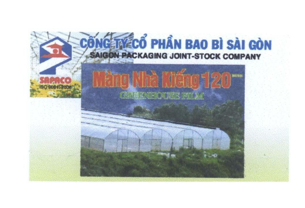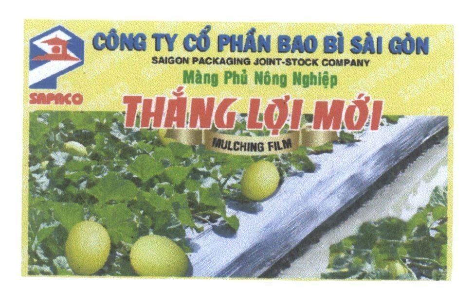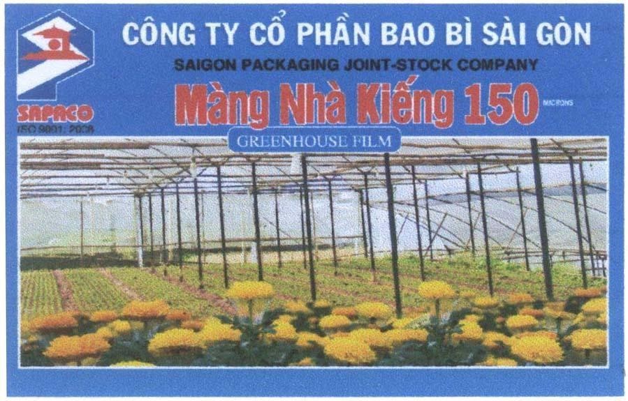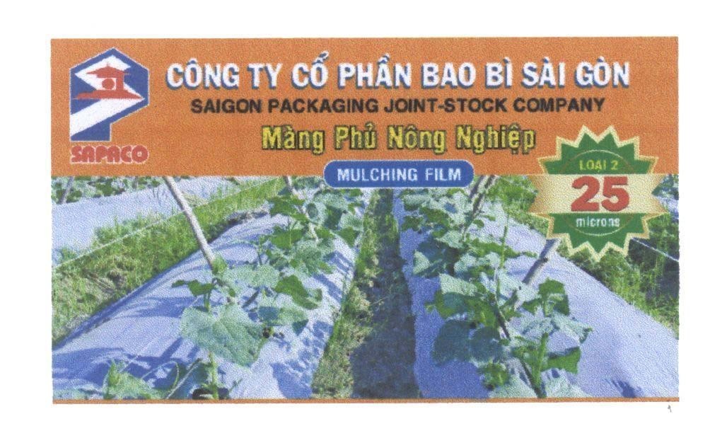 Nhãn hiệu được bảo hộ tổng thể. Không bảo hộ riêng "S", "P", "CÔNG TY CÔ PHÂN BAO BI", "PACKAGING JOINT-STOCK COMPANY", "Màng Phủ Nông Nghiệp", "MULCHING FILM", "LOAI 2", "25", "microns", hình chợ Bến Thành, hình màng phủ ruộng cây.